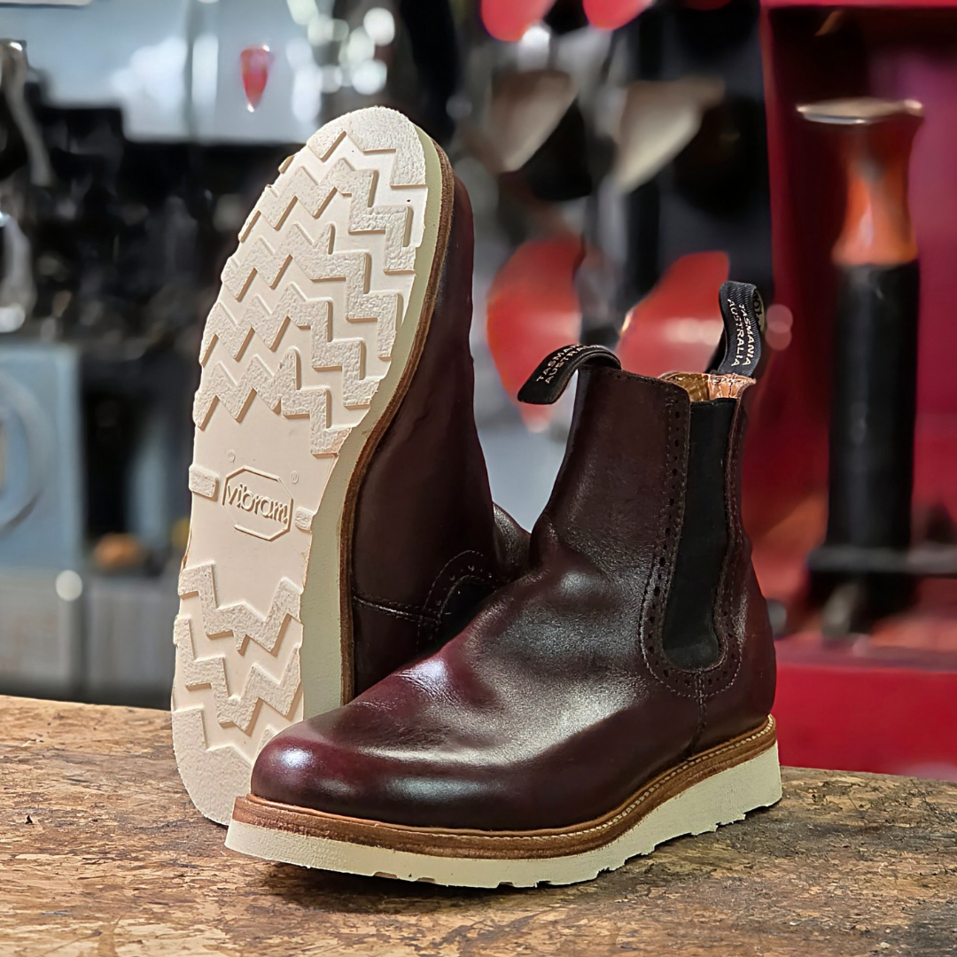 This isn’t just a resole it’s a full rebuild. We strip the original polyurethane soles and rebuild your Blundstones with a 360° storm welt, leather midsoles, and Vibram outsoles, all side- and Blake-stitched for lasting strength and balance.