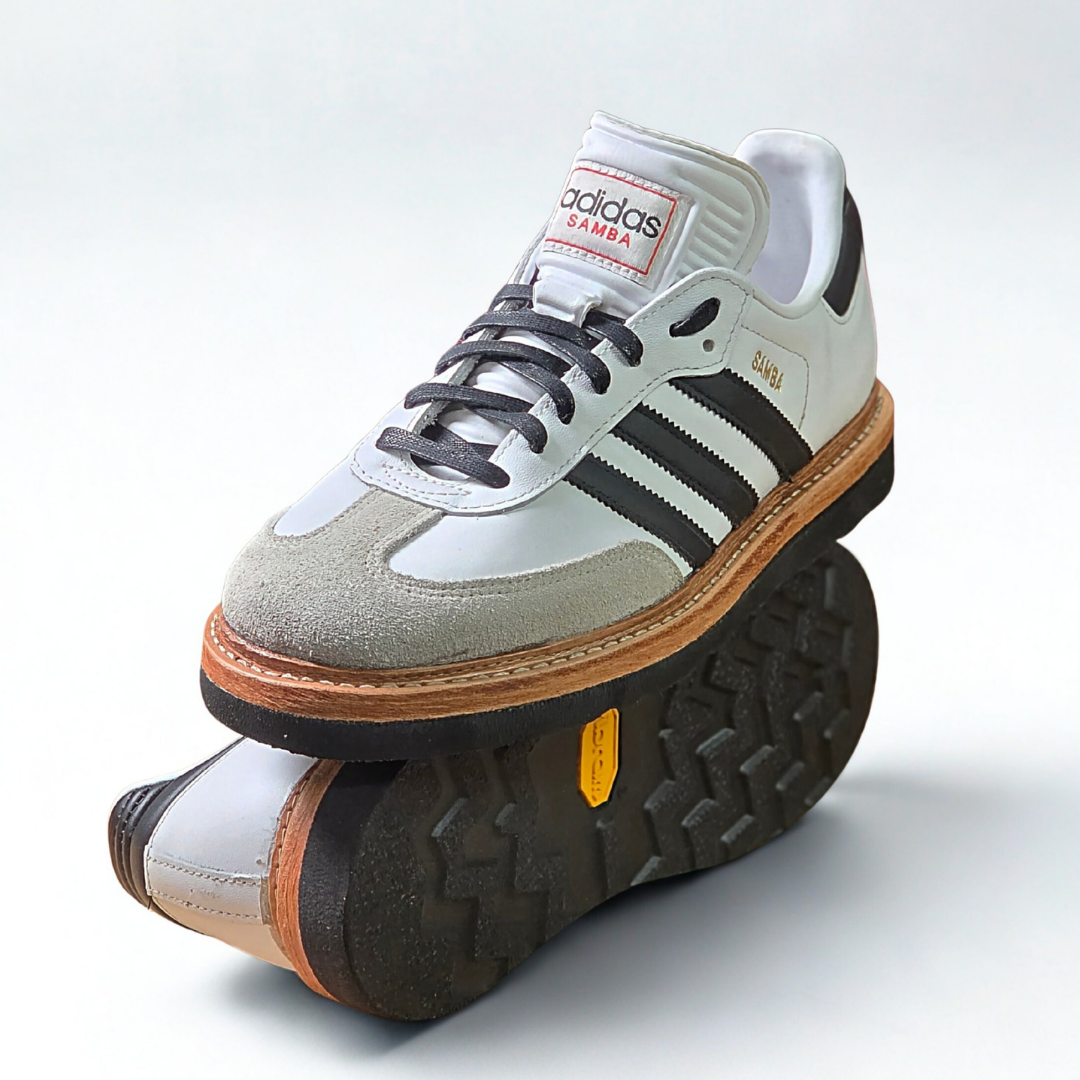 We rebuild adidas Samba sneakers with a hand-stitched 360° leather welt for added strength, comfort, and long-term wear. The result is fully resoleable footwear built to last well beyond the original construction. Serving USA, Canada, and worldwide. No need to send us your shoes. This project is not affiliated with adidas. We will source the sneakers on your behalf.