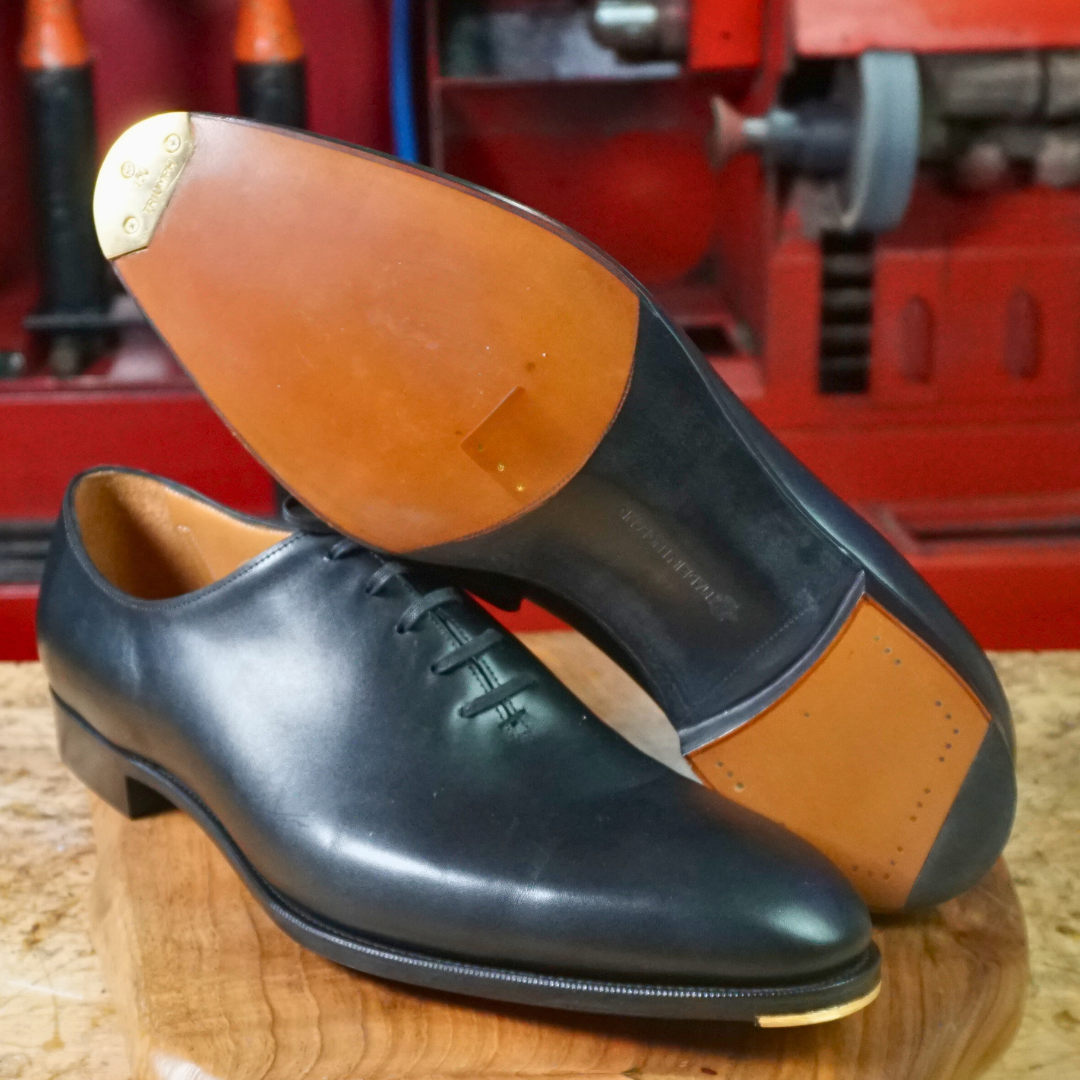 Elevate your high-end shoes with our Premium Leather Resole service. Meticulously crafted, we restore and enhance your favorite footwear with top-quality leather soles. Our service ensures superior comfort, durability, and a renewed look, preserving the elegance and value of your investment. Trust our expertise to bring new life to your beloved shoes.