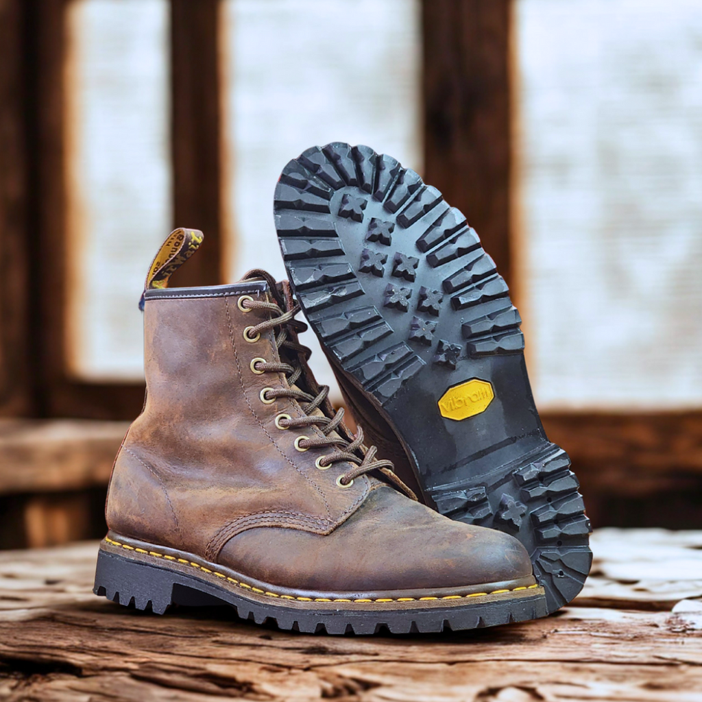 This isn’t just a resole it’s a full rebuild. We strip the old soles and rebuild your Dr. Martens with rubber midsoles and Vibram outsoles, all stitched for strength and durability.